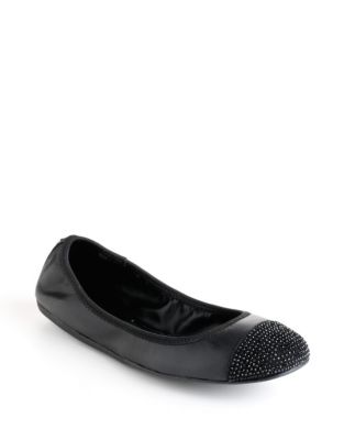 A panel of rhinestones at the toe lends a stylish sparkle to these ballet flats by BCBGeneration. Paired with everything from a dressy skirt to casual shorts; these flats enhance your look with sophisticated flair. Slip-on style Round toe